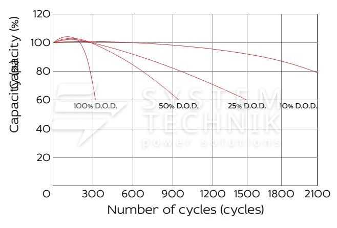 - Рекомендуемое напряжение заряда в циклическом режиме для 12В батареи: 13,8В-14,1В при 25ºС;