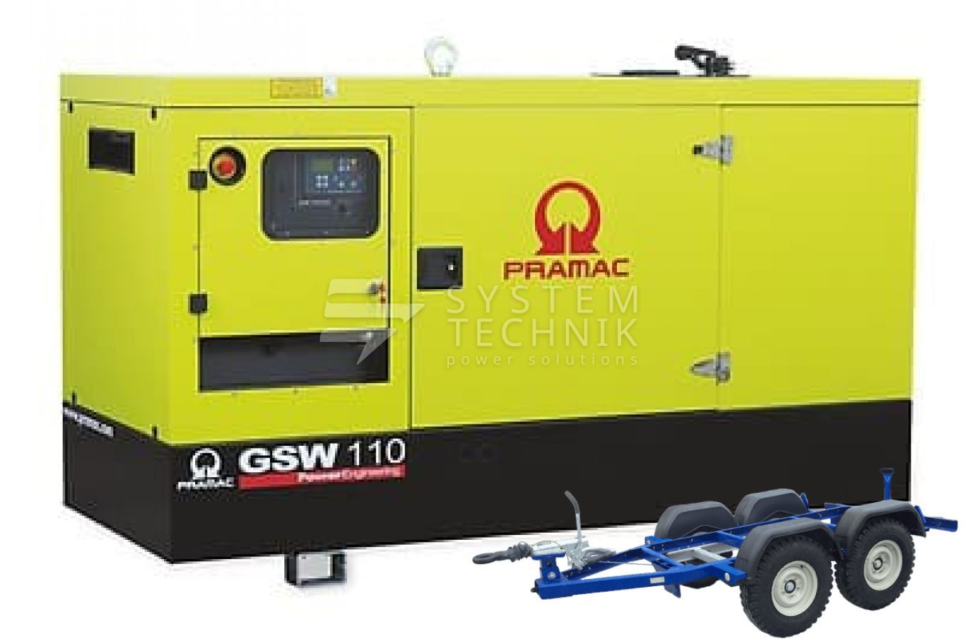 - Дизельный генератор Pramac GSW 110 I В кожухе на прицепе