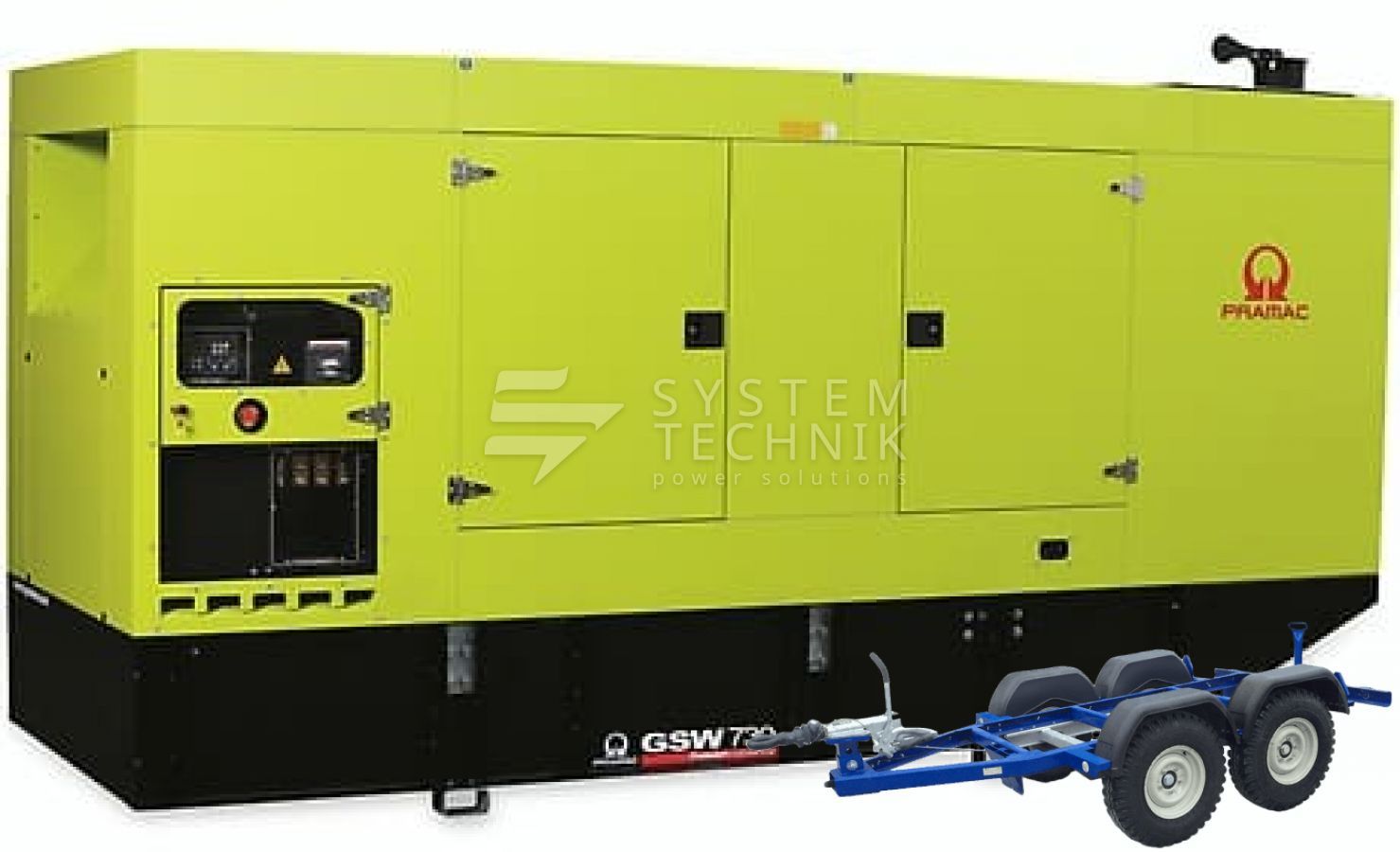- Дизельный генератор Pramac GSW 730 M 400V В кожухе на прицепе